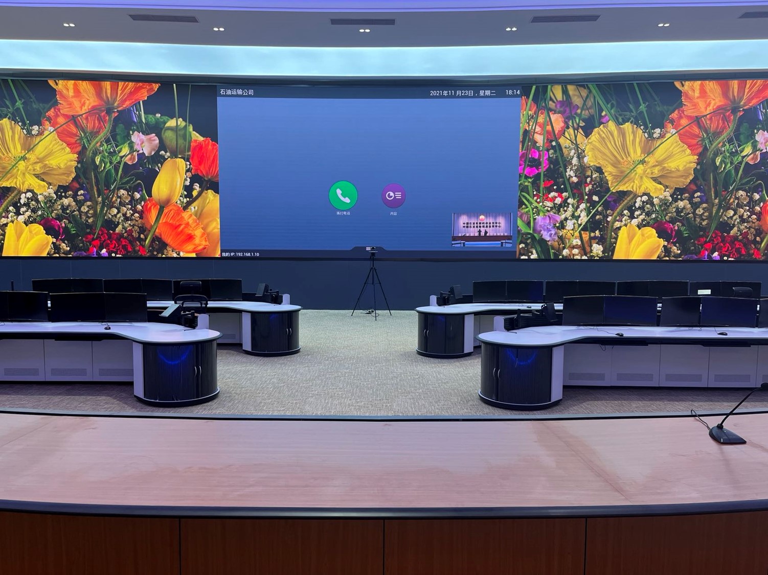 中國石油集團(tuán)安全環(huán)保技術(shù)研究院1層視頻會議室創(chuàng)新型的運(yùn)用0.93mmLED顯示屏,不僅滿足單位召開視頻會議室使用,同時可用于超高分圖像的展示工具,對研究院研發(fā)團(tuán)隊成果展示、實驗過程分析提供保障。同時對現(xiàn)有視頻會議功能進(jìn)行升級,由原來模擬、標(biāo)清視頻會議形式升級為高清、4K會議,